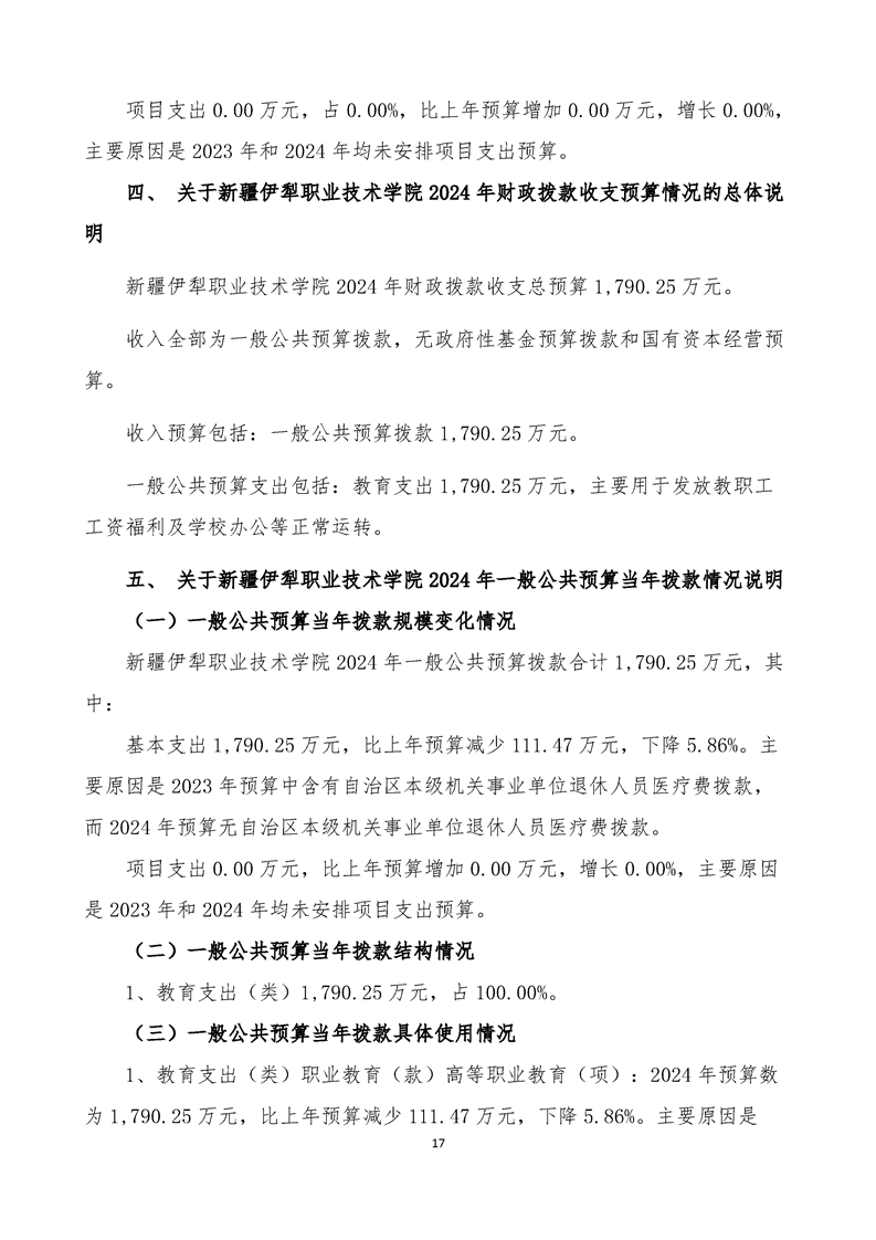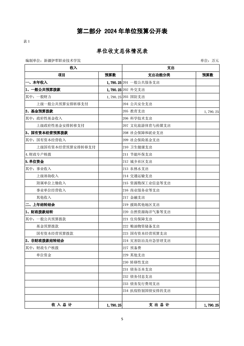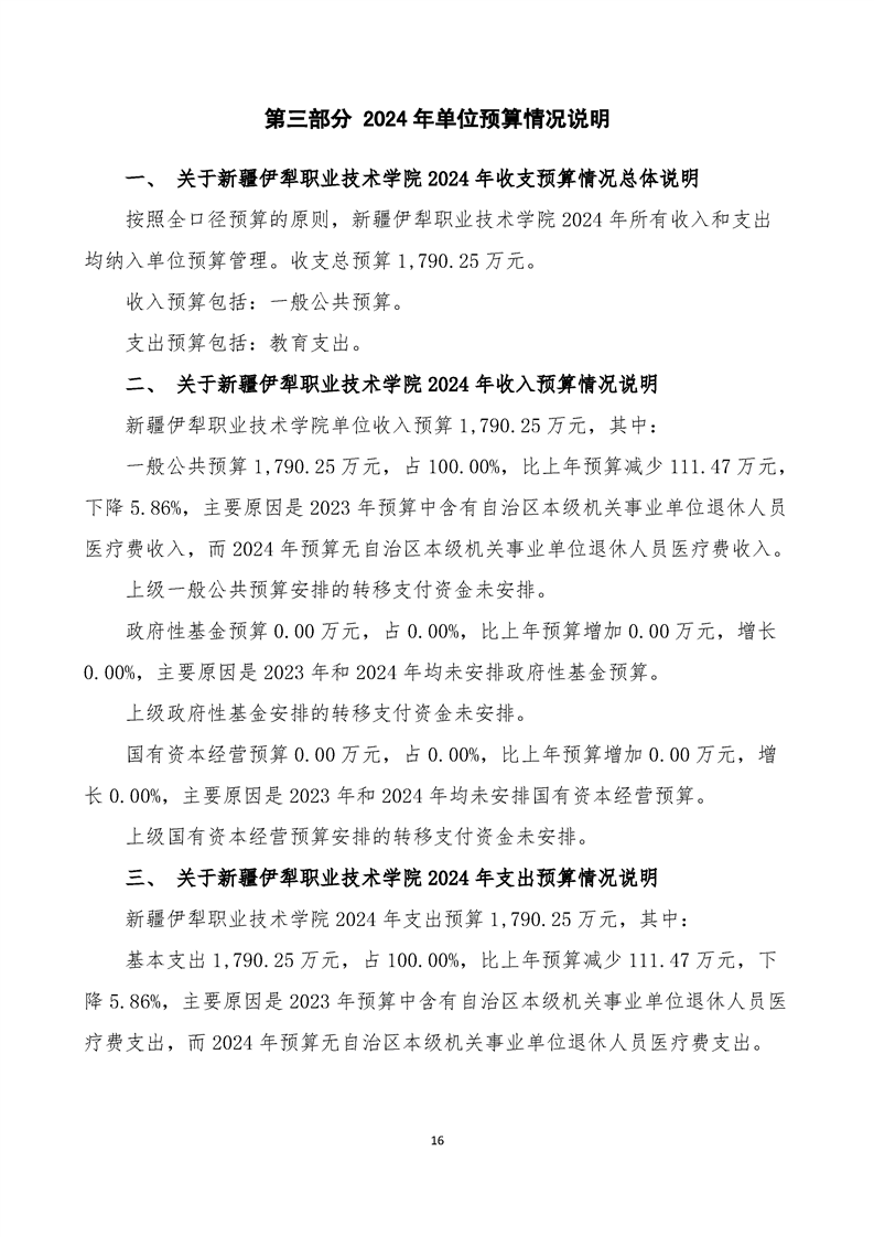 新疆伊犁职业技术学院2024年单位预算公开 -银河官网