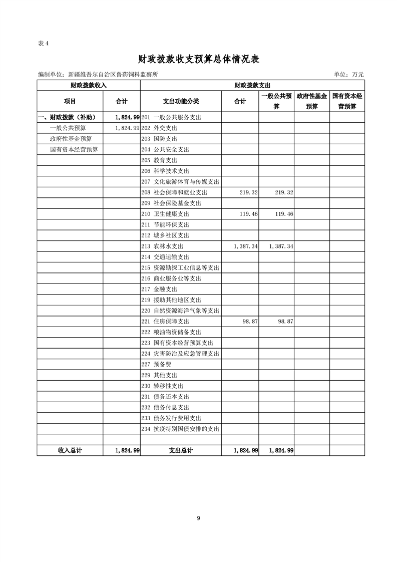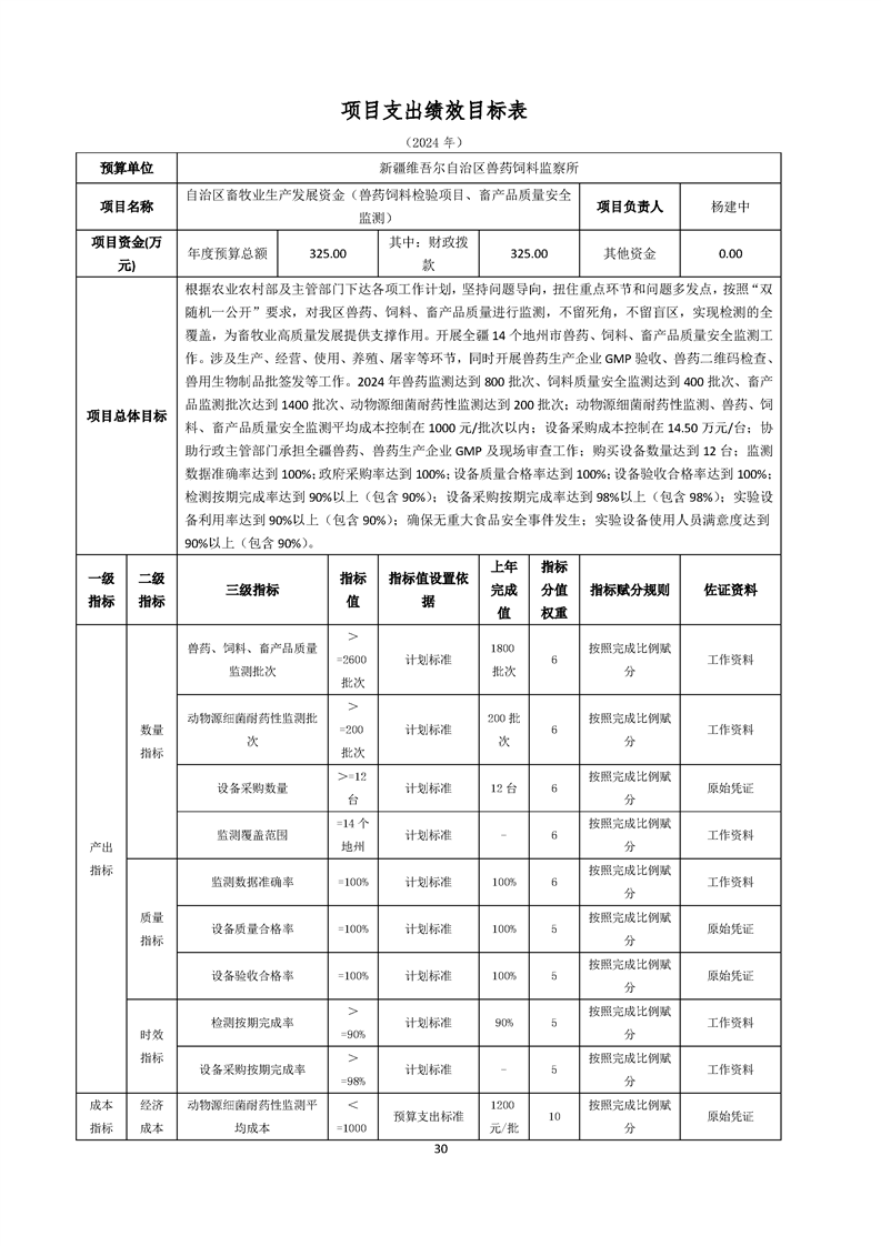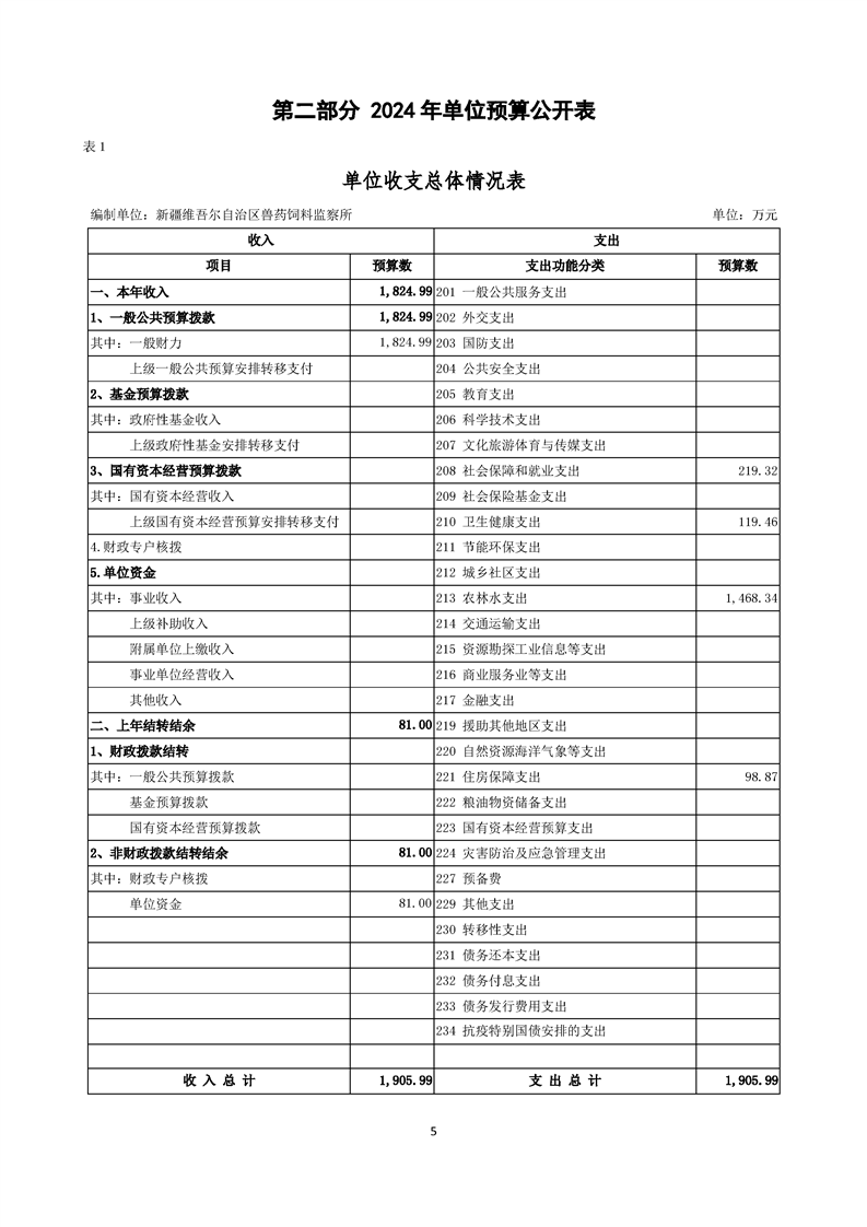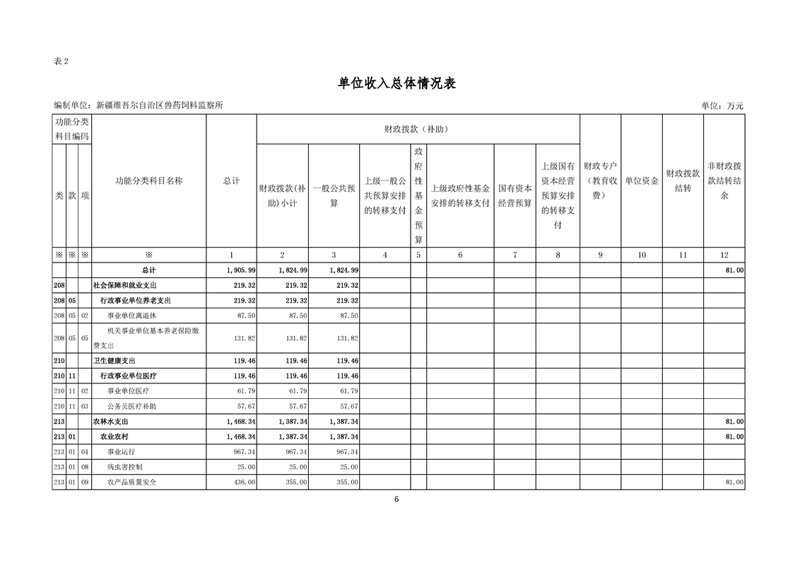 新疆维吾尔自治区兽药饲料监察所2024年单位预算公开