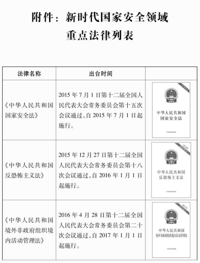 附件:新时代国家安全领域重点法律列表